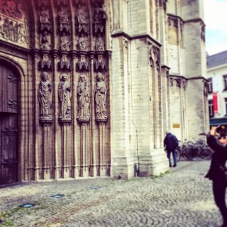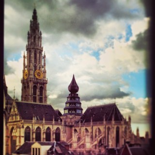 | Anneke and I stopping for a rest in the square – Antwerp |