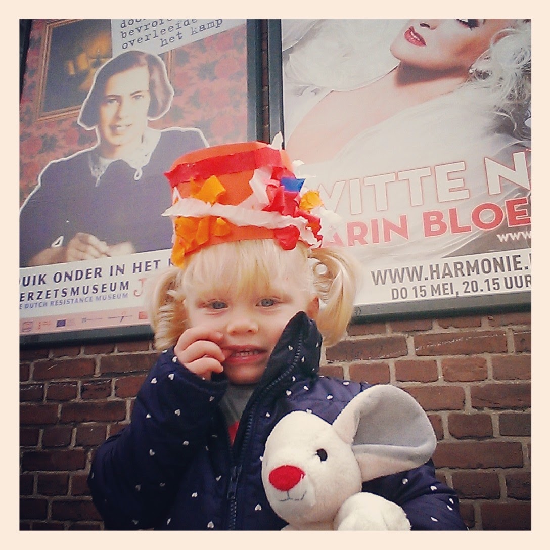 Anneke has already started getting into the spirit. Today at Peuterspeelzaal, Anneke made a Koning muts (crown) and played all sorts of games.