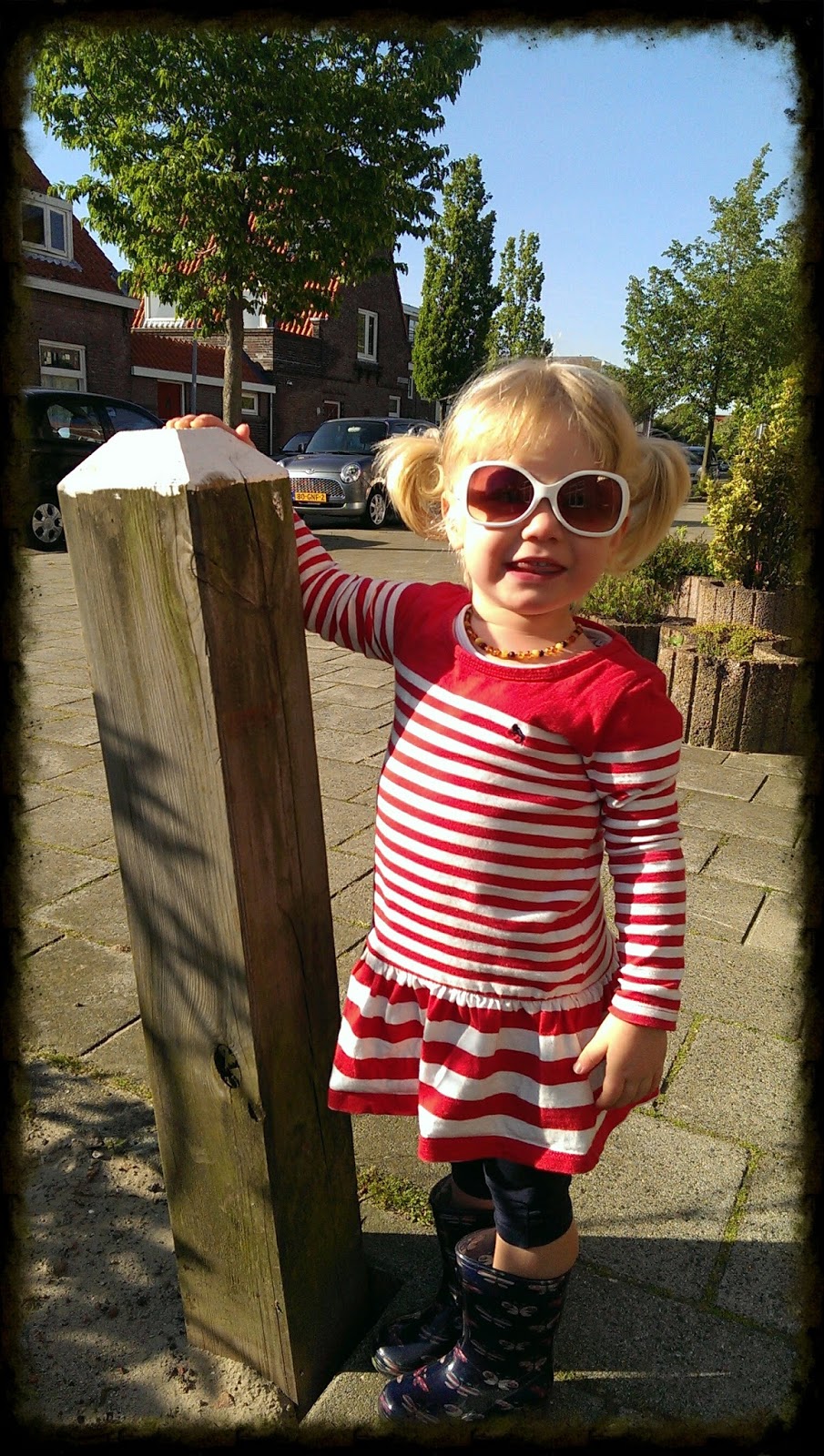 I don't know where she gets it, but she won't leave the house without glasses and her hand bag!