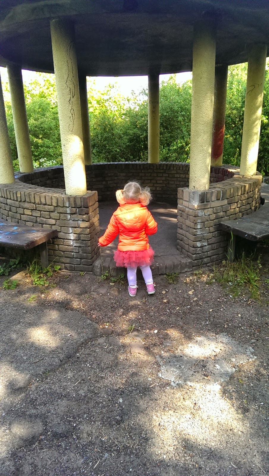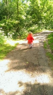 Unfortunately, our playdate cancelled on us (family emergency back in Ireland), so Anneke and I set off on our own adventure.  A 30 minute bike ride later, Miss A and I parked the bike and went for a walk.  Miss A was in fine form, singing and dancing.
