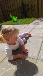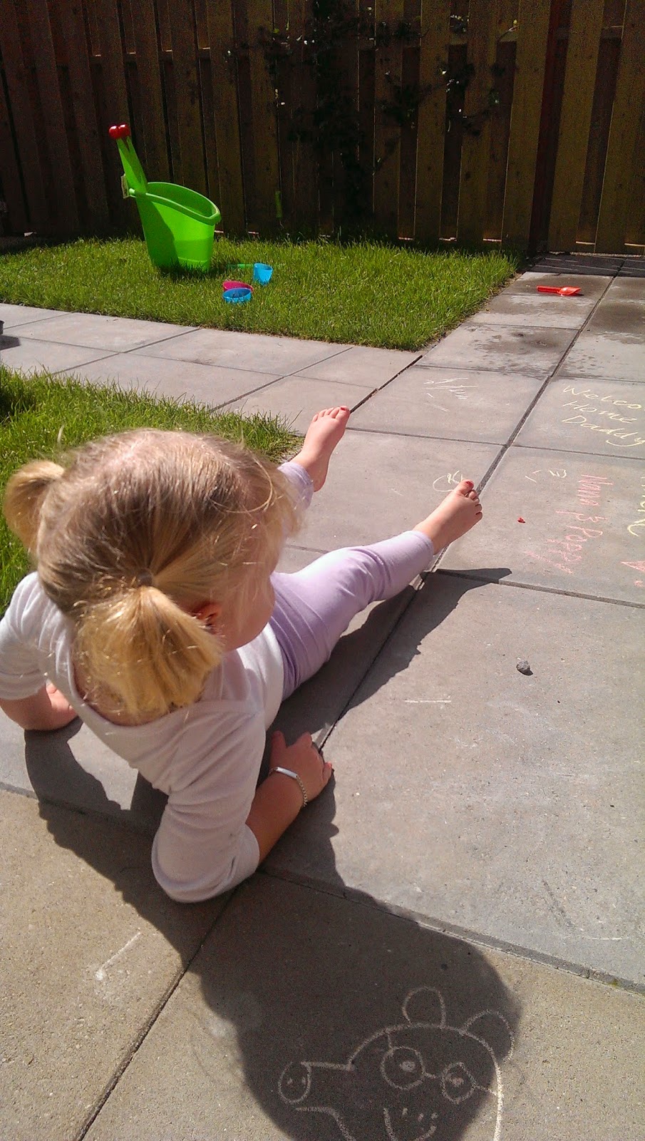 At home we relaxed in the backyard.  Miss A watered the garden and played for an hour with a bucket of water.  It was the delightful.