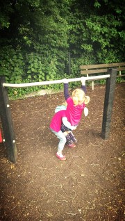 So, after waving good bye I rode BACK to our house to meet them at the park. As Miss A came off the buggy, she was in good form, singing at the top of her voice “Helikopter, Helikopter” – the song is much longer but that’s all she knows.
