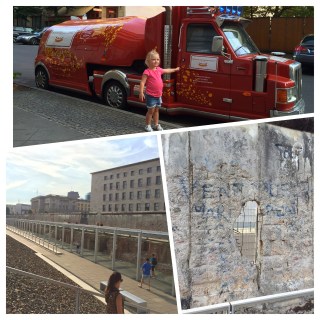 | Miss A found a Curry Worst (very Berlin) truck which was just her size. Also a section of old the Berlin Wall. |