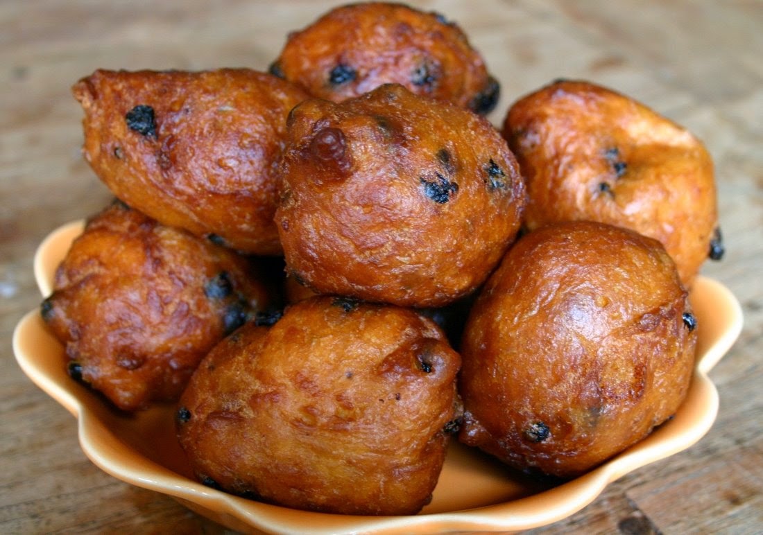 Oliebollen are a variety of dumpling made by dropping dough into a deep fryer filled with hot oil. Oliebollen are traditionally eaten on New Year’s Eve and at funfairs. In wintertime, they are also sold in the street at mobile stalls.
